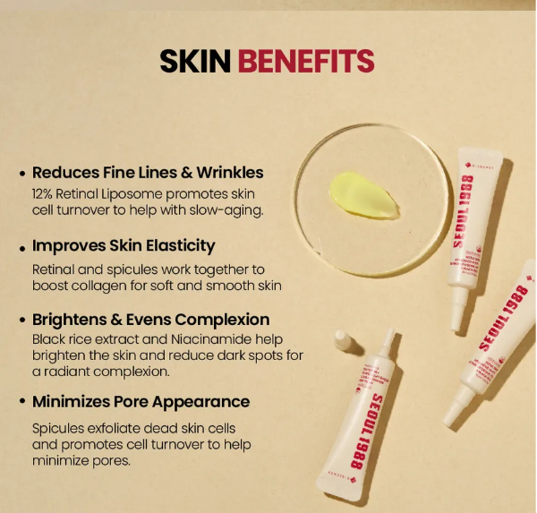 Formulada con un 12 % de liposomas de retinal para promover la renovación celular y ofrecer un efecto antiedad.
