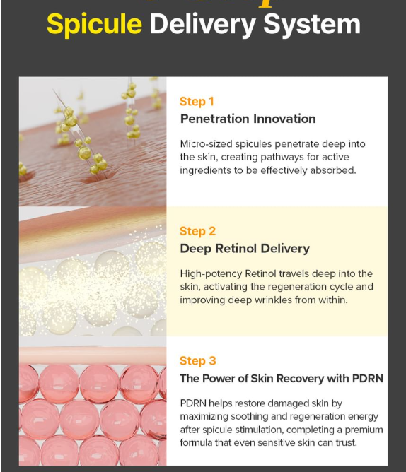Cuenta con una alta concentración de retinol de nanoliposomas de tamaño micrométrico, que reduce la irritación de la piel a la vez que mejora la estabilidad y la absorción.