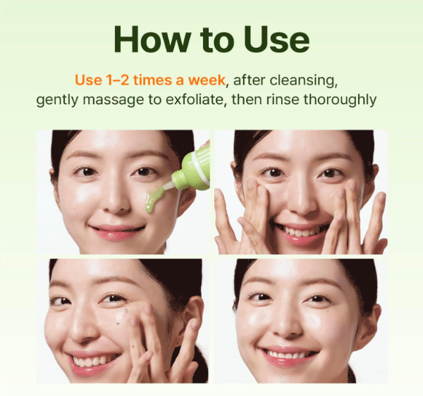 Enriquecida con extracto de centella asiática y ceramida acuática, calma la piel después de la exfoliación.
