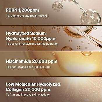 PDRN 1200 ppm: Clínicamente respaldado con la concentración óptima de 1200 ppm de PDRN de salmón, que mejora la absorción, para rejuvenecer y revitalizar la piel.