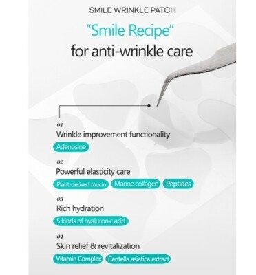 Un parche para el cuidado de las arrugas que proporciona abundante nutrición a las zonas problemáticas de la sonrisa y cuida la piel para que sea flexible y suave.